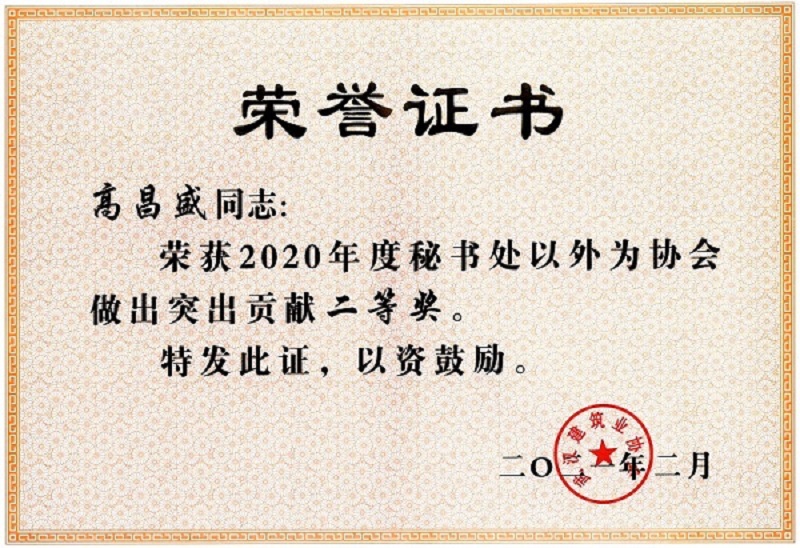 高昌盛獲2020年度秘書處以外為協(xié)會做出突出貢獻(xiàn)二等獎